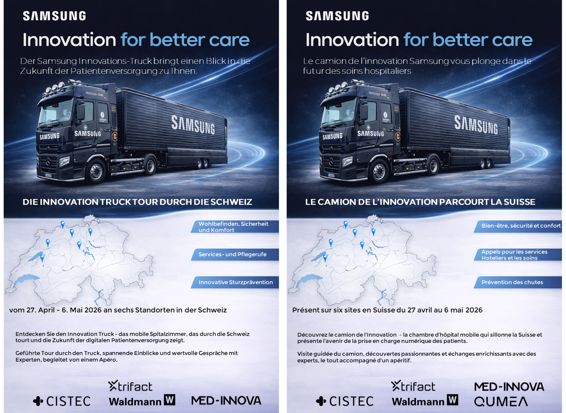 Der Truck richtet sich ausschliesslich an Mitarbeitende aus dem Spitalumfeld. Das Ziel ist es, live zu zeigen, was heute im Gesundheitswesen bereits möglich ist. Besucher erleben hautnah, wie Technologie die Patientenversorgung verbessern, Abläufe optimieren und den Arbeitsalltag erleichtern kann.